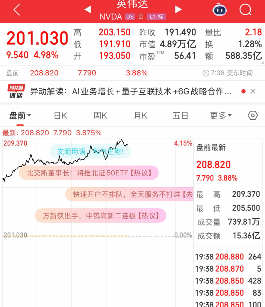 $新易盛(SZ300502)$ 英伟达盘前大涨4%