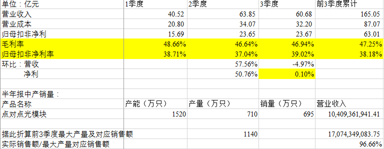 3季度营收环比没有增长,是受产能所限。最大亮点是销售回款激增。最大不足是产品结构