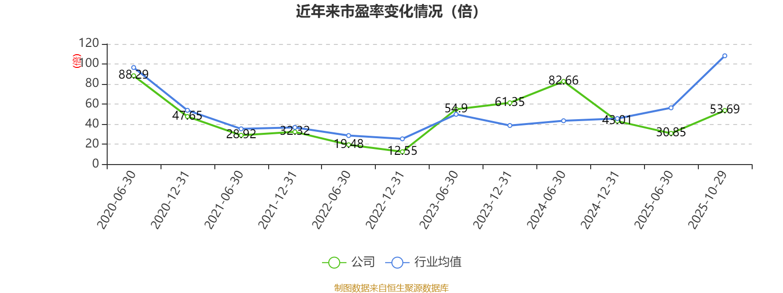 以10月29日收盘价计算,新易盛目前市盈率(TTM)约为53.69倍,市净率(LF)约27.79倍,市销率(TTM)约20.16倍。
