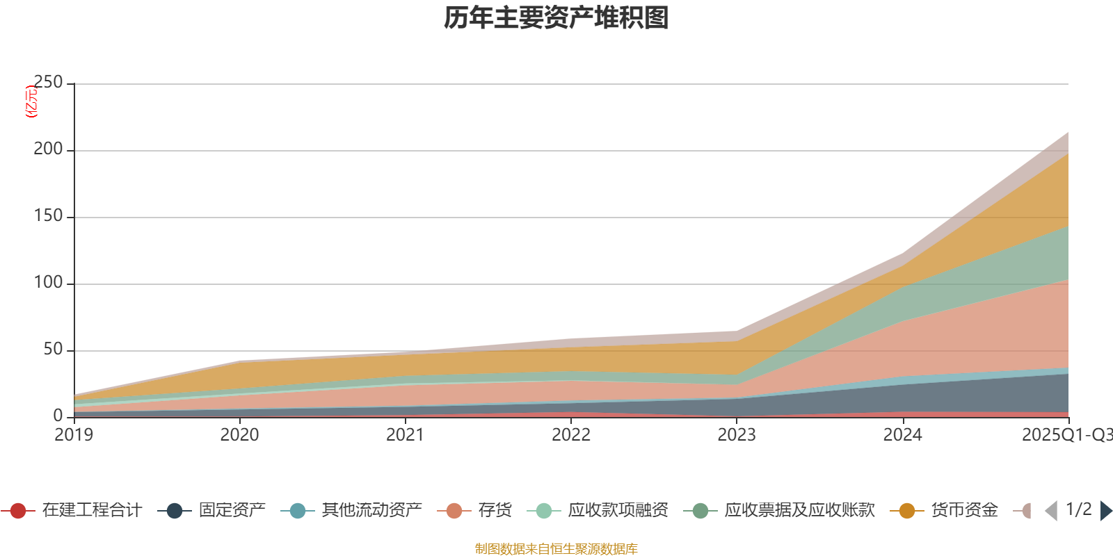 资产重大变化方面,截至2025年三季度末,公司货币资金较上年末增加239.86%,占公司总资产比重上升12.42个百分点;固定资产较上年末增加41.82%,占公司总资产比重下降3.06个百分点;其他流动资产较上年末减少25.02%,占公司总资产比重下降2.89个百分点;存货较上年末增加59.79%,占公司总资产比重下降2.77个百分点。