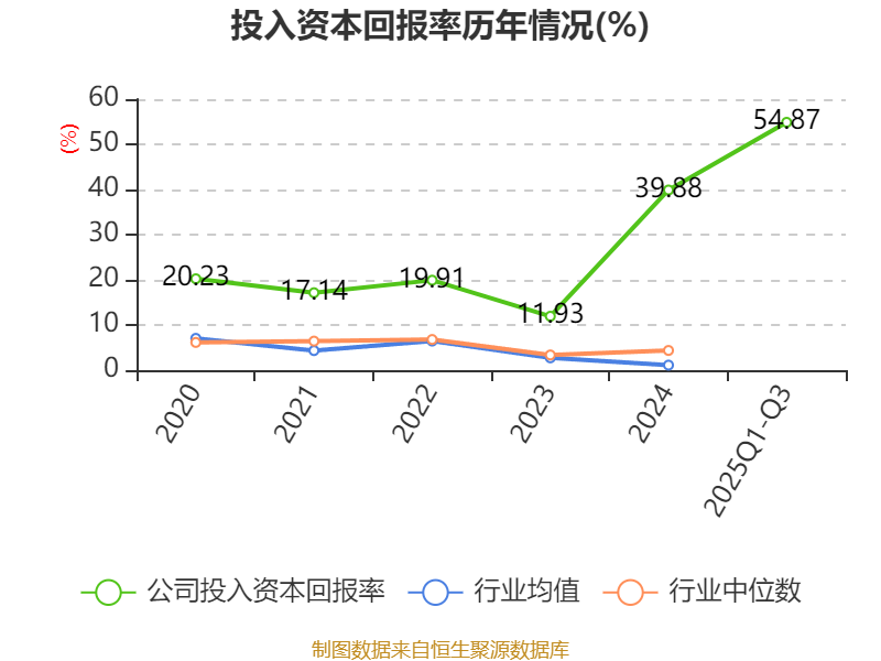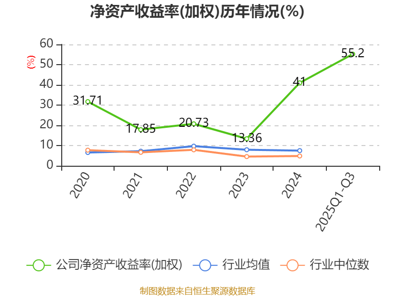 盈利能力方面, 2025年前三季度公司加权平均净资产收益率为55.2%,同比上升40.84个百分点。公司2025年前三季度投入资本回报率为54.87%,较上年同期上升29.76个百分点。