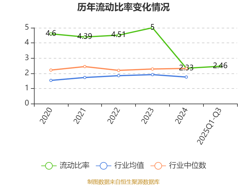 2025年前三季度,公司流动比率为2.46,速动比率为1.48。