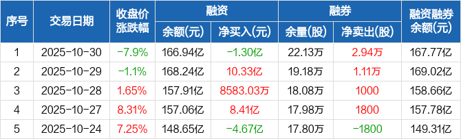 新易盛:融资净偿还1.3亿元,融资余额166.94亿元(10-30)