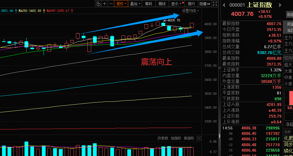 周四市场走势符合预判。市场早盘竞价小幅高开。开盘后指数震荡上行,上午盘中再次站上4000点,午后归来指数维持高位震荡,收盘以当日最高点报收,今年第二次收盘站稳4000点,K线收光头实体小阳柱,成交量略有增长,全场成交量再回2万亿以上。昨天市场高开,昨天说了高开容易形成震荡,那是在成交量不足的情况下,好在今天成交再回2万亿。昨天说了要大家:抛弃熊市观点,坚信牛市行情,精选板块个股操作就好了。现在大盘没有什么指数风险,主要就是板块持续性有点差,场内纠错能力相较于以前的大涨行情有区别,所以追涨容易被T让持有者难受一段时间,其实现在对于轮动板块低吸潜伏也是不错的选择。