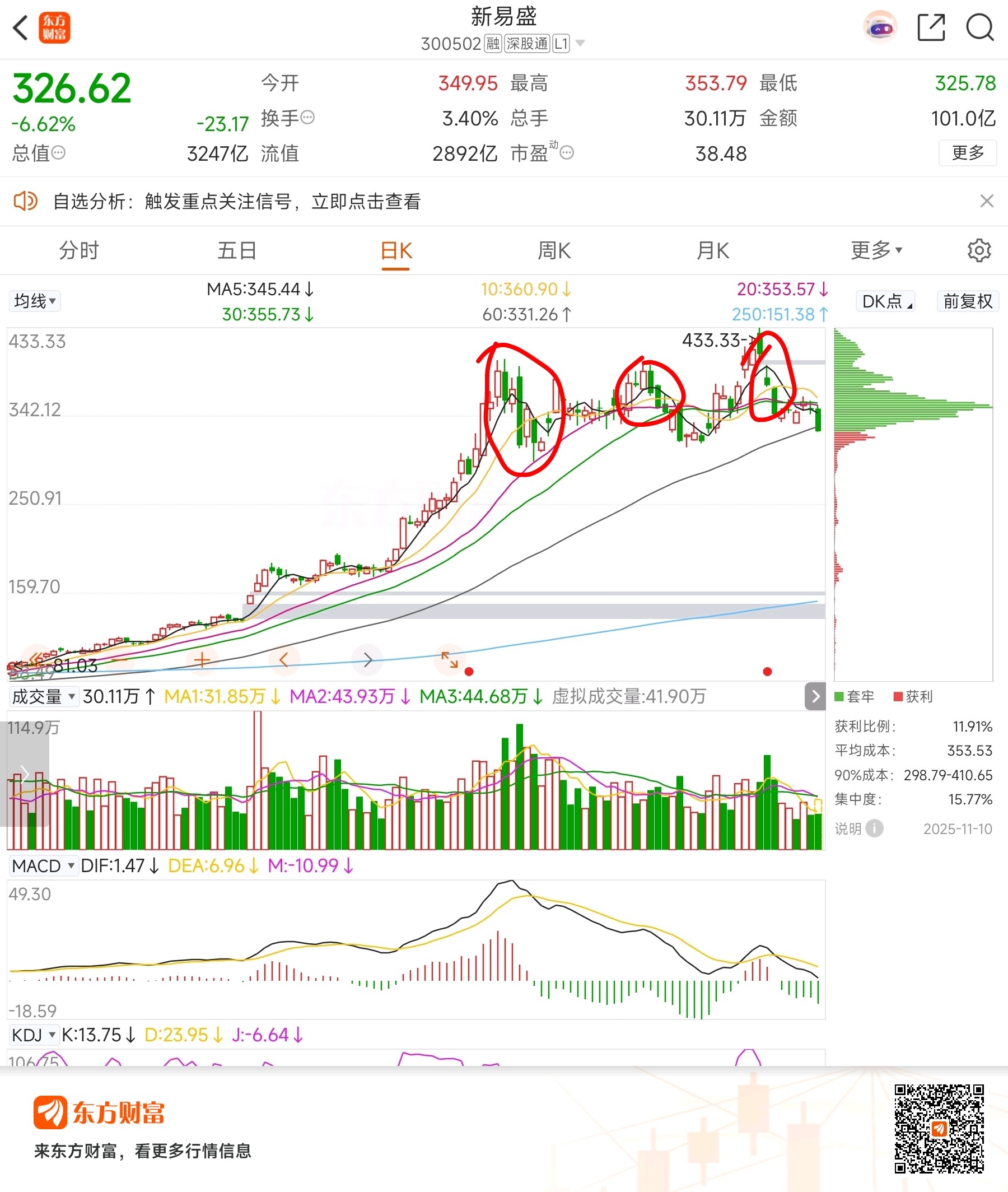 $新易盛(SZ300502)$ 主力大幅度减仓出货位置