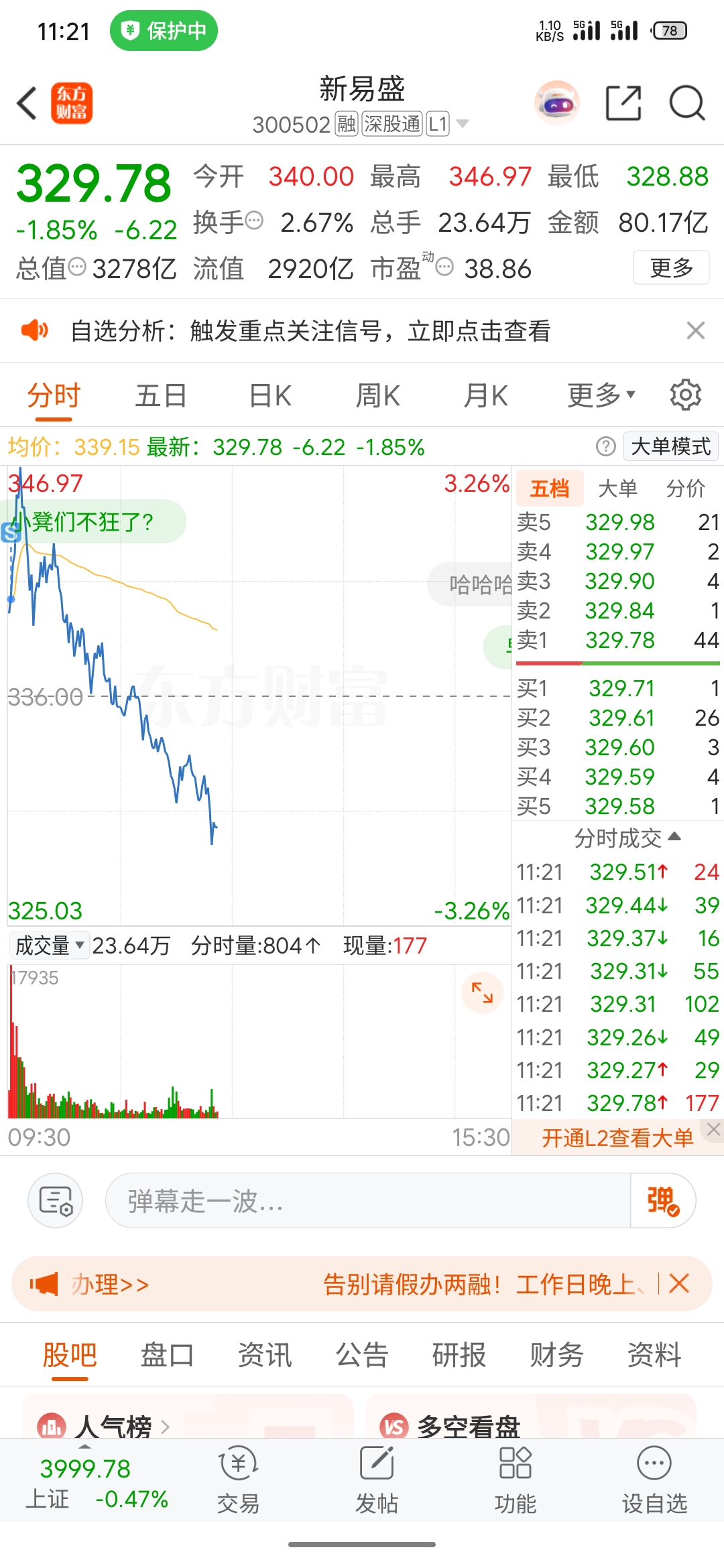 $新易盛(SZ300502)$ 开盘就走以为卖飞了,现在看来真的不能买高位科技股了