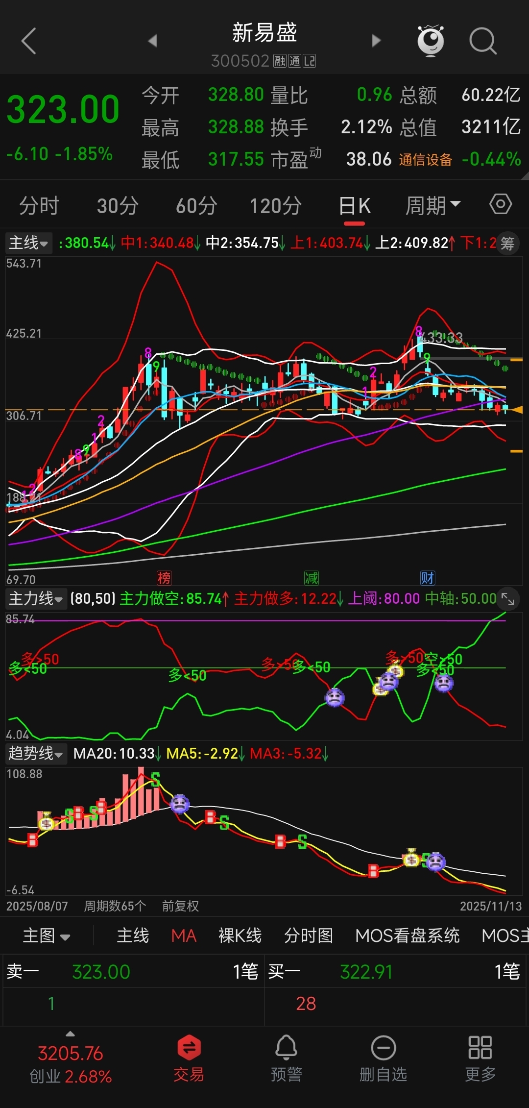 主线切新能源了,不用质疑了。日线有点开口向下了,主力做空线突破天花板后还在云端,
