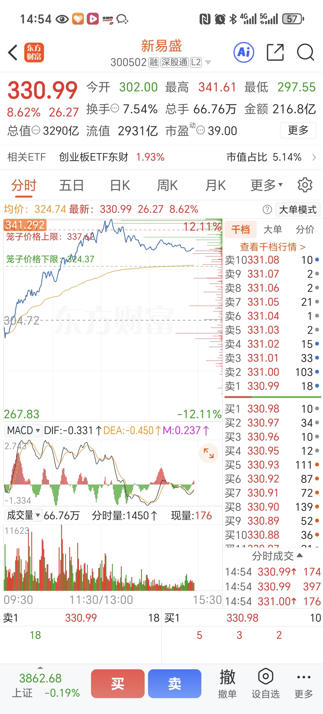 $新易盛(SZ300502)$ 为啥,打到成本线就掉了
