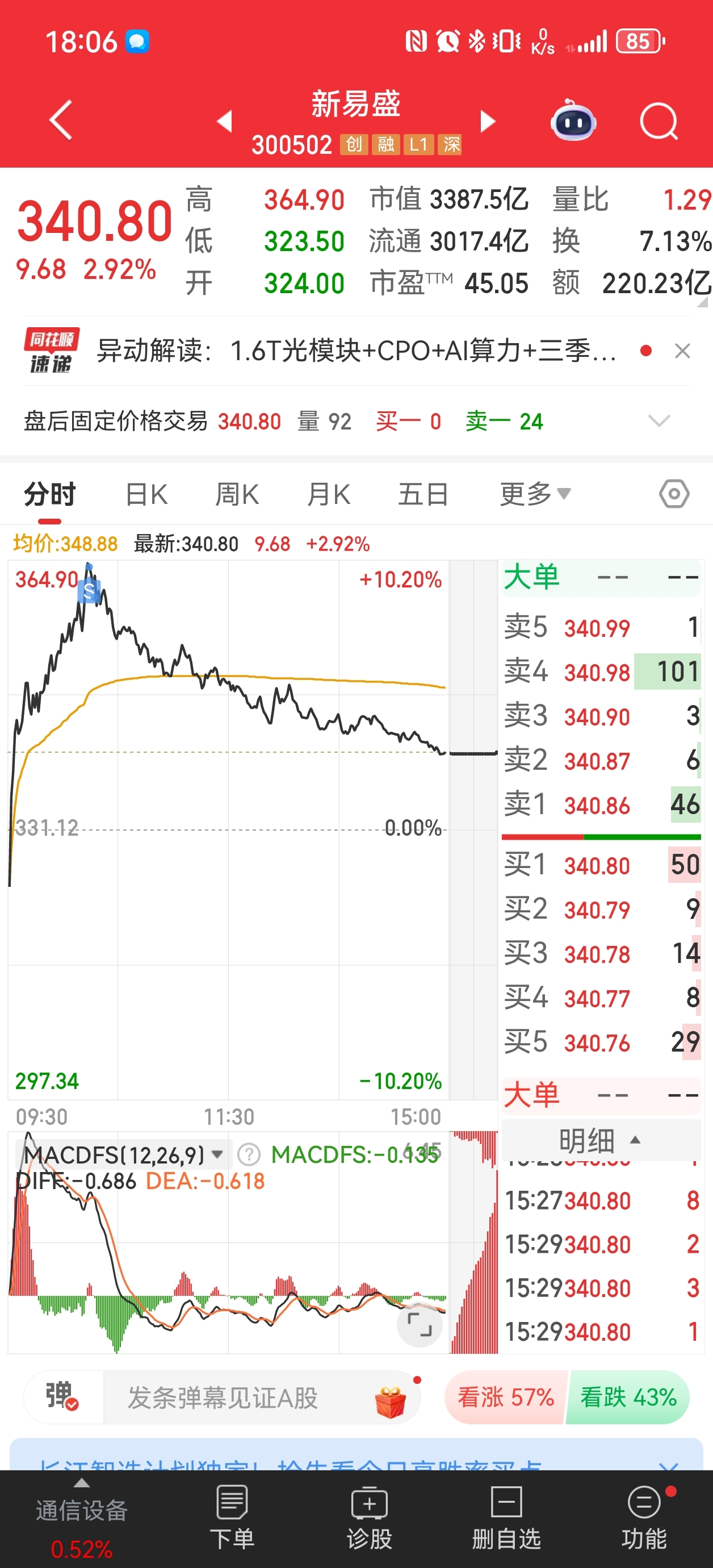 $新易盛(SZ300502)$ 今天清仓了,明天还有机会接回来吗?