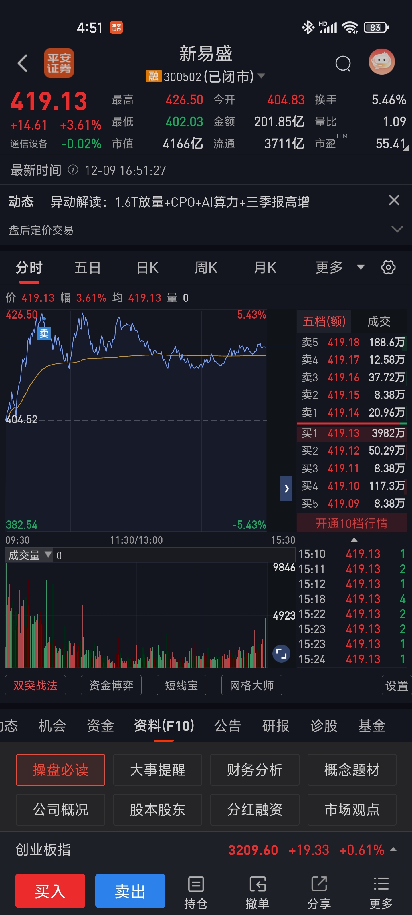 $新易盛(SZ300502)$ 很棒的票买的少了,到了前高先出来看看,等回调再找机会买回来
