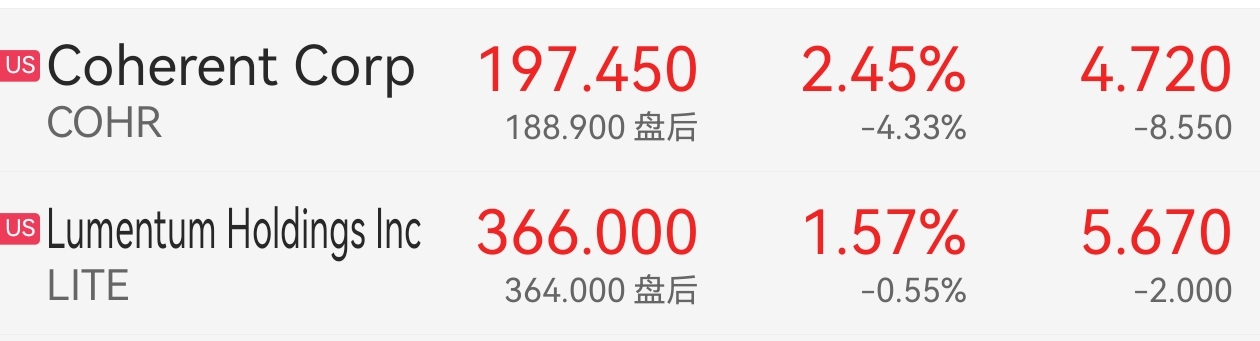 $新易盛(SZ300502)$ 今日财经:美股光模块双雄今晨继续涨