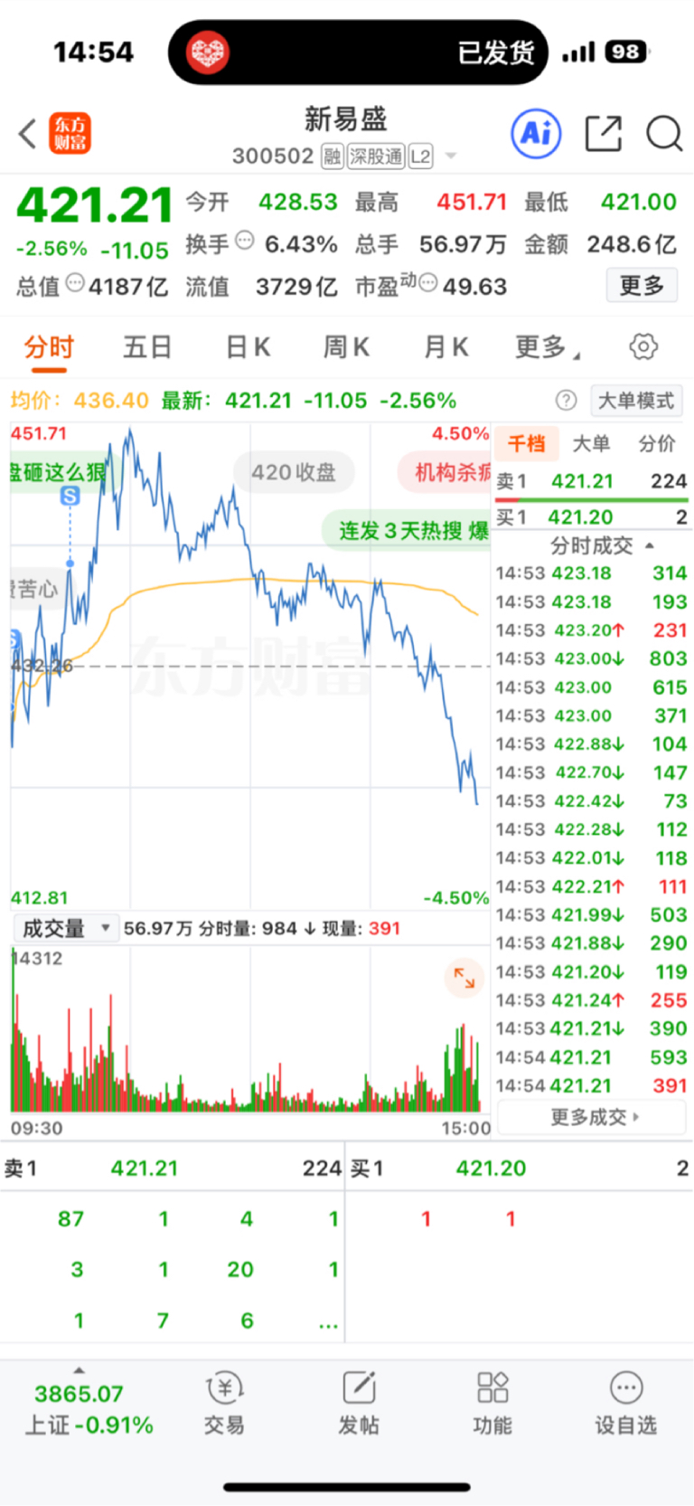 $新易盛(SZ300502)$ 精准逃顶,一股不剩,大学生养家的含金量还在上升