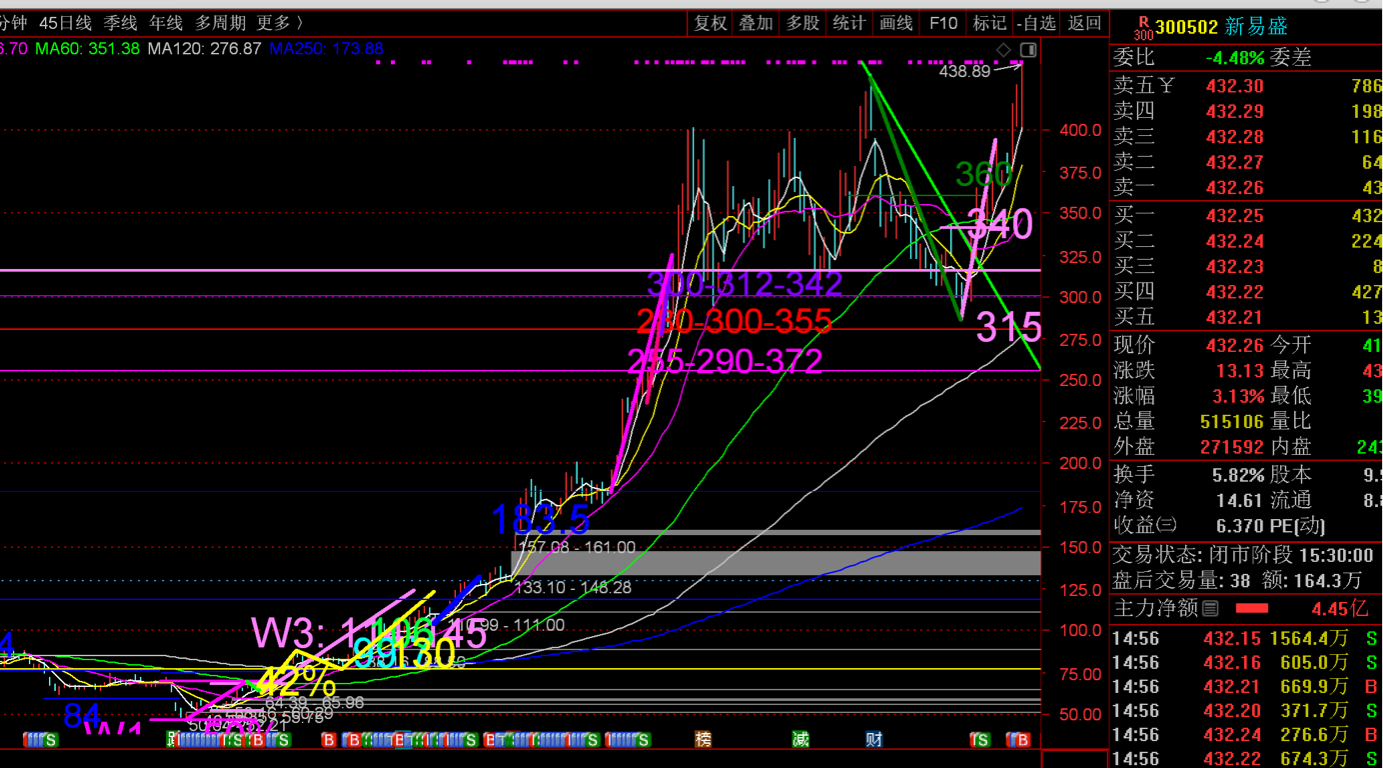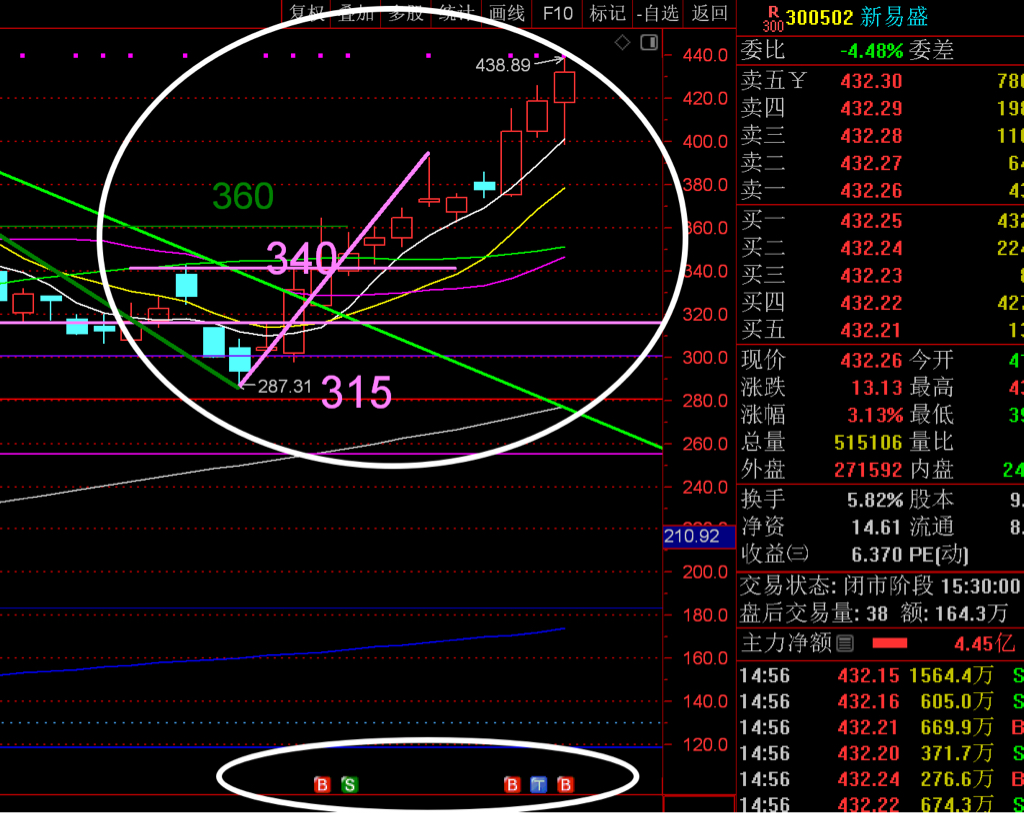 从目前的估值很难找到理想及所谓合理数值,在长时间的持股或者做到真正你们喜欢的价值投资方式时,在震荡中排除小作文的干扰,最好方法除了以日周月周期K进行函数对数运算后,比对数值修复误差值,获得一个在2%范围内误差的高低点,特别是这种历史新高的需要大量资金堆积的标的上,上限无从参考。所以在没有绝对值前,日内及60分钟的运算相对安全及时一点。或者保持一定仓位的T,坚持做到调整特征出现,让资金在某一时段达到最大化及最大收益,当日t出保证收盘后没有全仓的比列。当然做t对很多个体门们来说都很难。哈哈哈哈哈哈哈哈,批噻了那么久说点儿实在的:从周月线看528-545会是一个极其明显的震荡位置,那么在没有实现495-507以上高位标段时,日内12.11日如果成交量没有明显放大,在后面2个交易日不能突破850亿的成交金额,会出现的是日内的低幅度振幅,往往出现大开大合才有利于拉升周期最短最猛。如果今日平开及低开在414-419一线形成有支撑,445-452会成为没有明显放量大日内高压力波动点。但如果出现直接高开拉升突破445后,不进行钓鱼式回踩会是另外一个故事。5日线走的那么好,笨点儿的门们都知道如何参与了!!!#实盘记录#