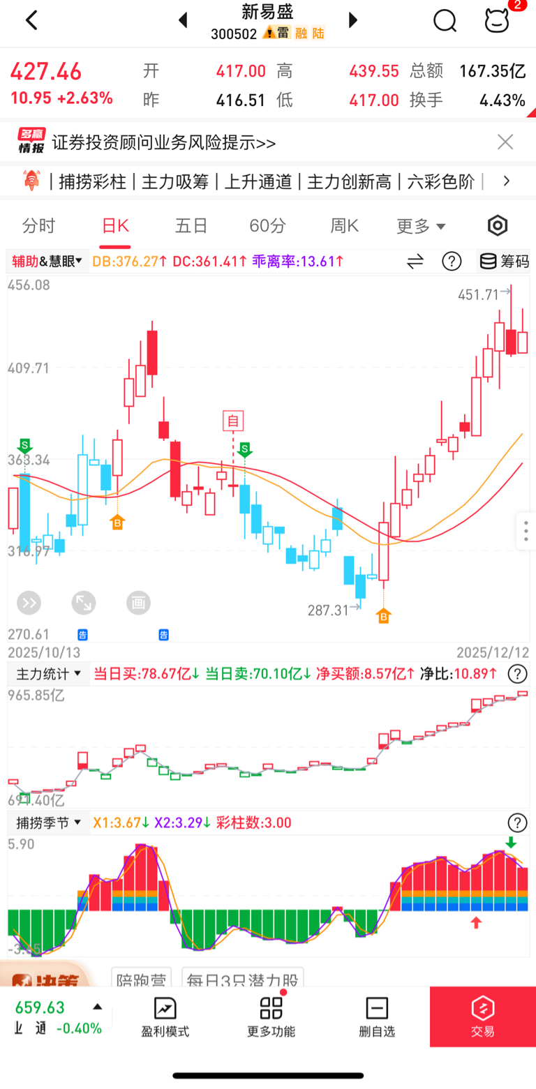 $新易盛(SZ300502)$ 毕竟13天涨了12天,上涨动力有所减缓,但三线资金还在共振,筹码不多,继续格局。