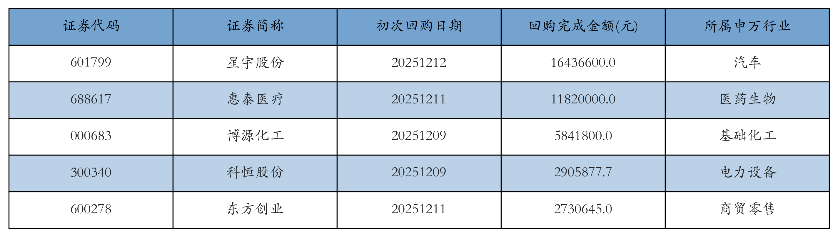 上周共有7条开始执行回购公告,其中执行金额最多的5条公告为: