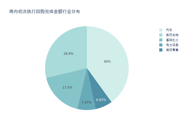 按照初次执行金额所在不同行业分布,金额最高的3个行业分别为:汽车、医药生物、基础化工,详情见下图: