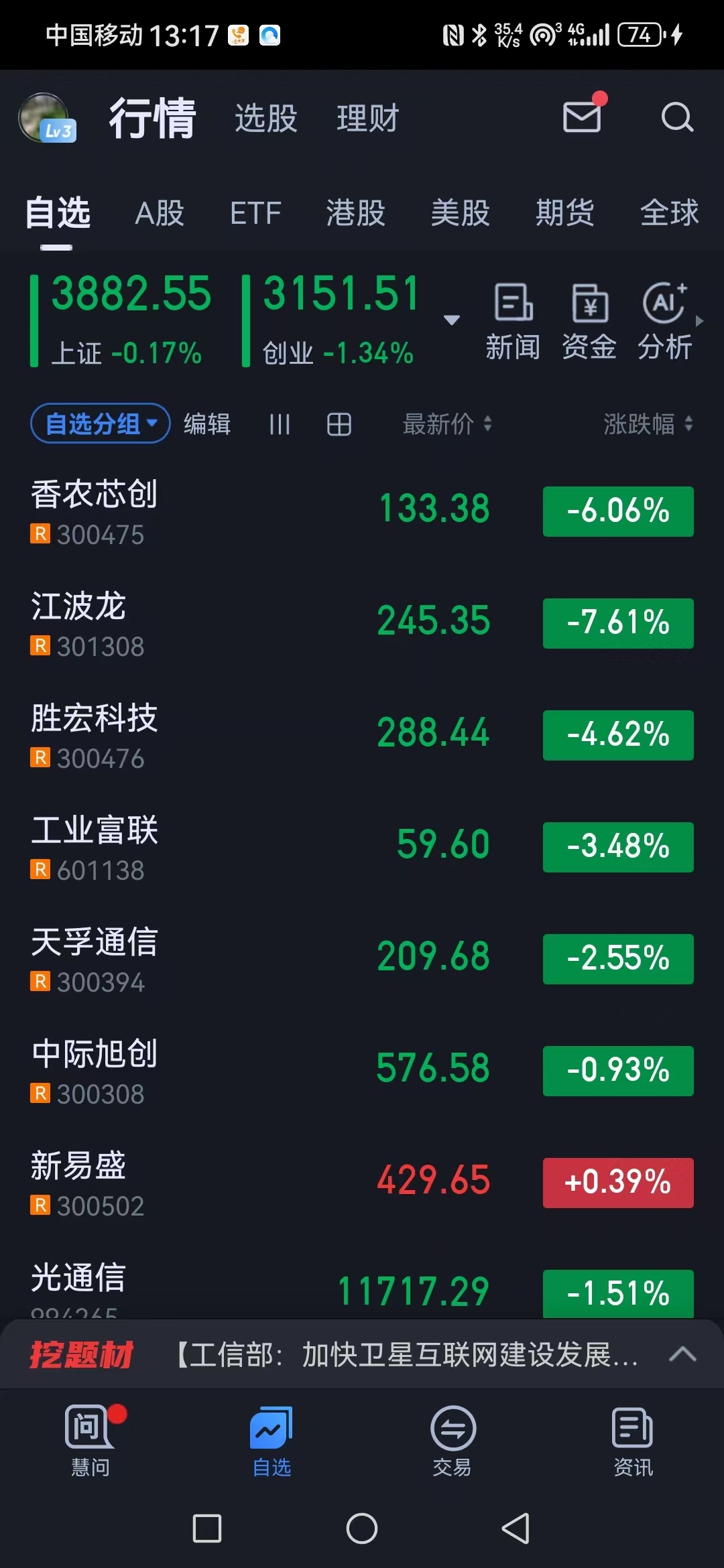 我觉得买商业航天好我吃了航天发展20.3吃的新易盛,中际旭创,天孚通讯就是商业航