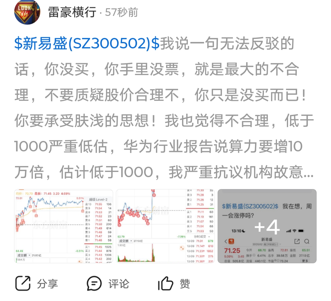 $新易盛(SZ300502)$ 不敢买,拿不住,真想打自己的脸。四十多我也在