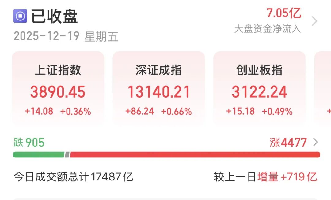 12月19日,A股指数微红,量能微增,近4500只个股收涨,大消费股亮眼。