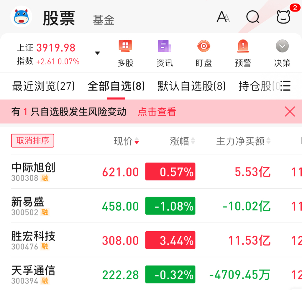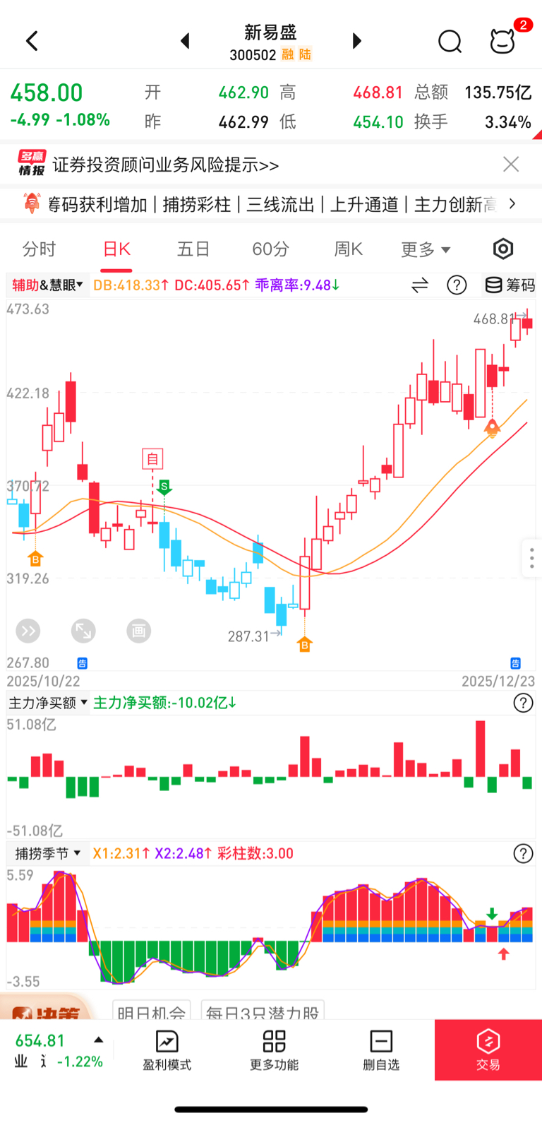 新易盛虽然主力有所流出,但整个趋势形态尚未完全反转,继续格局看明日。