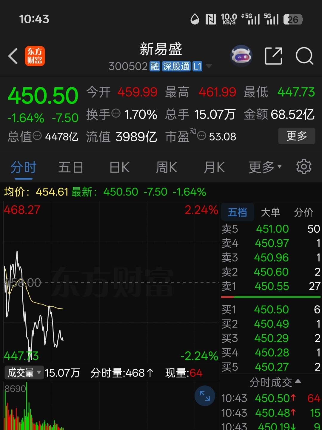 $新易盛(SZ300502)$ 今天开盘以后没有抛出的九友们现在这个时间点是不是很痛苦?