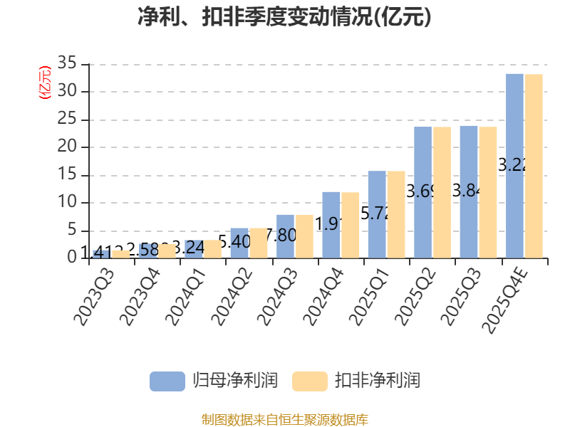 新易盛:预计2025年净利94亿元-99亿元 同比增长231.24%-248.86%