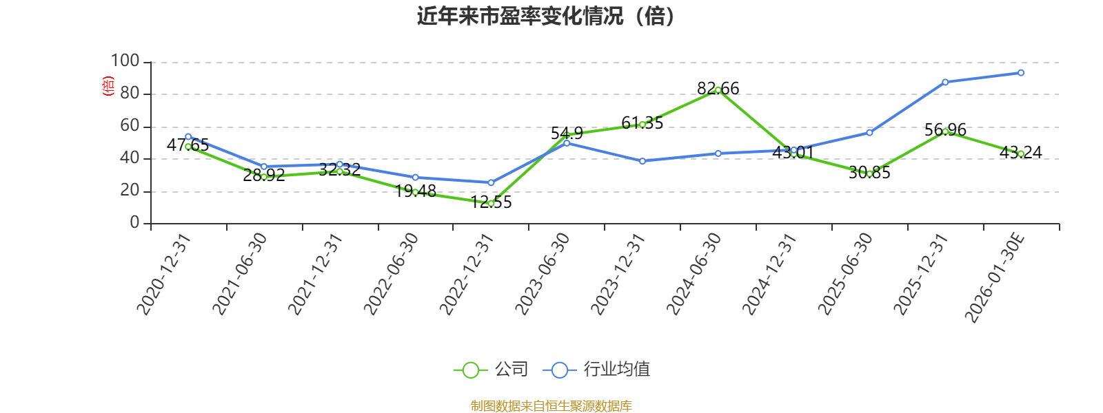 中证智能财讯新易盛(300502)1月30日晚间披露2025年度业绩预告,预计2025年归母净利润94亿元至99亿元,同比增长231.24%-248.86%;扣非净利润预计93.67亿元至98.67亿元,同比增长231.02%-248.69%。以1月30日收盘价计算,新易盛目前市盈率(TTM)约为42.12倍-44.36倍,市净率(LF)约28.71倍,市销率(TTM)约20.83倍。