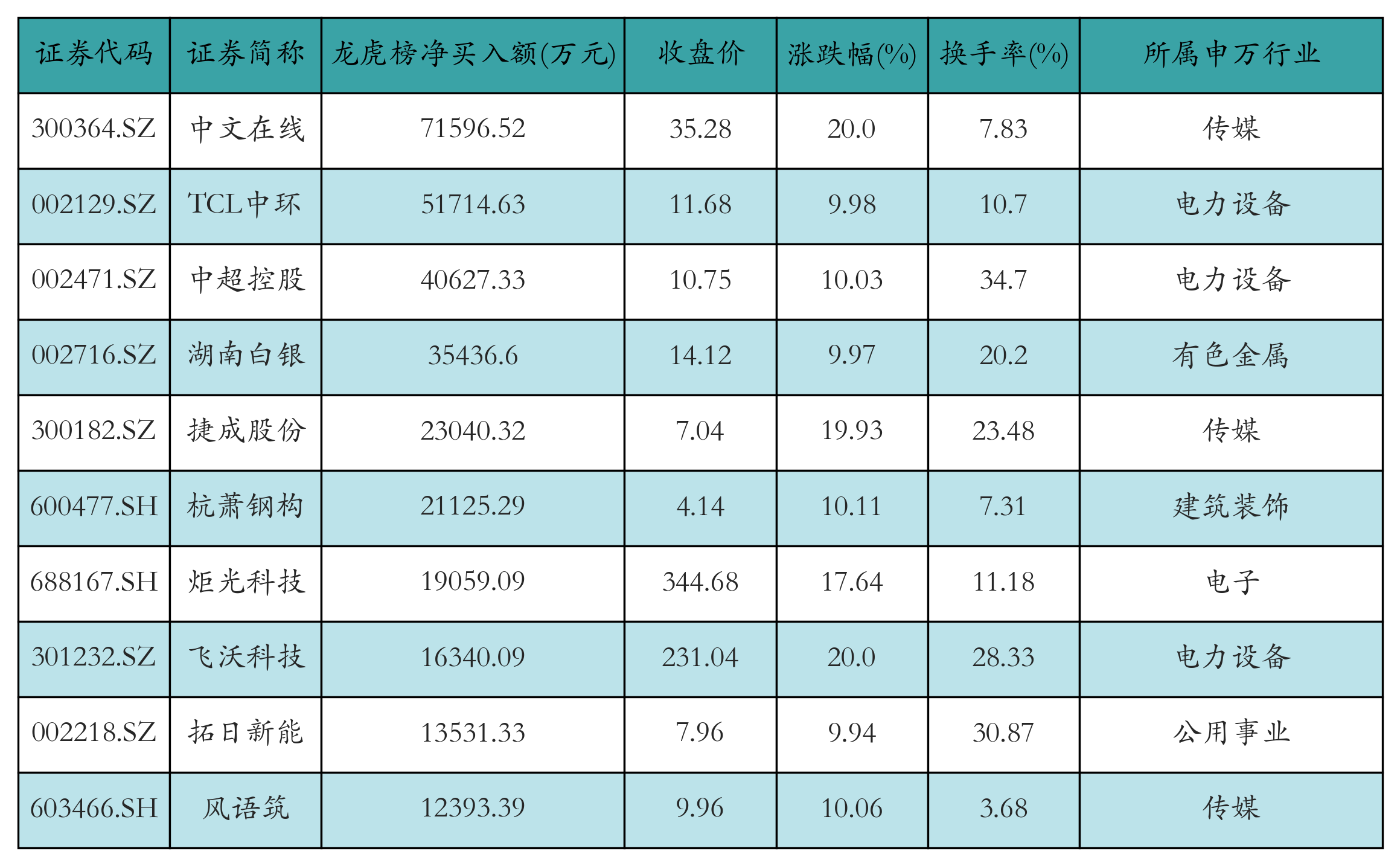昨日龙虎榜营业部净买入额前10详情见下表: