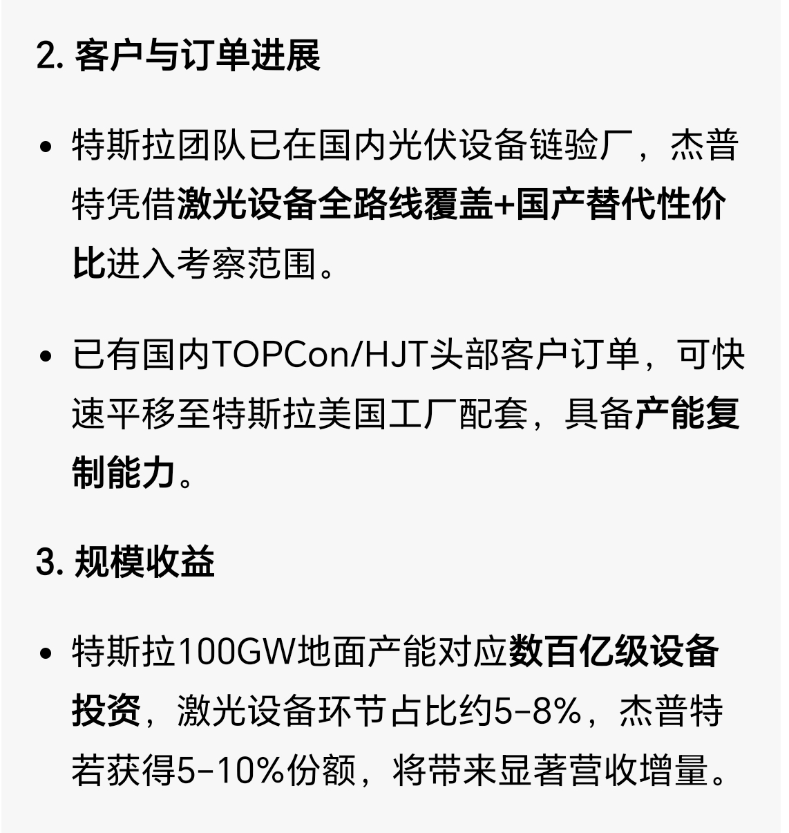 杰普特妖股,剑走偏锋,就供应核心的激光引擎,拿到了MPO和FAU的大厂认证,开始配套直供谷歌和微软,从一亿美元订单迅速增长,2025的三季报就开始爆发,2025全年和2026可期,另外光伏设备最近也助力,SpaceX太空和特斯拉地面双光伏获益,最近猛涨。