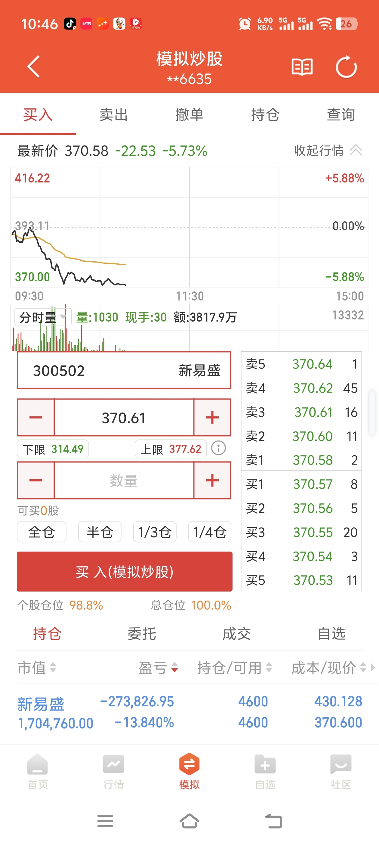 跌麻了,还好我用的模拟盘。