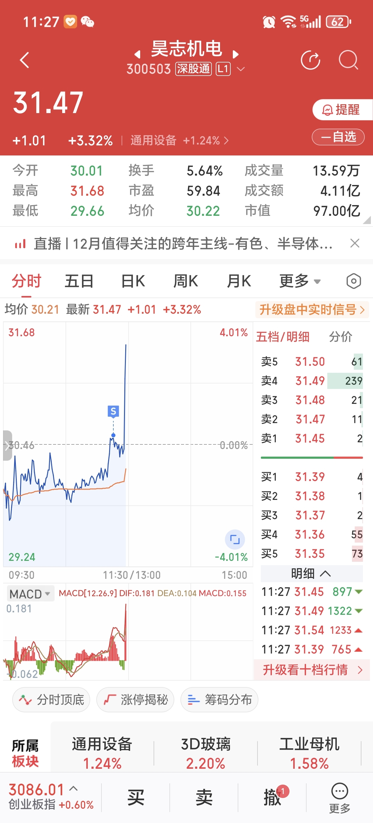 $昊志机电(SZ300503)$ 一定要吃我这点筹码吗?郁闷卖飞五个点