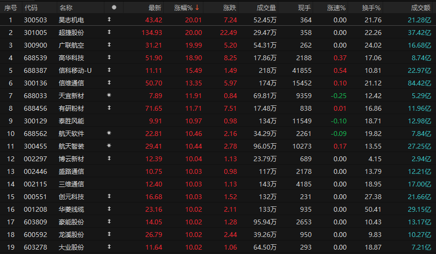 2、商业航天板块大面积涨停