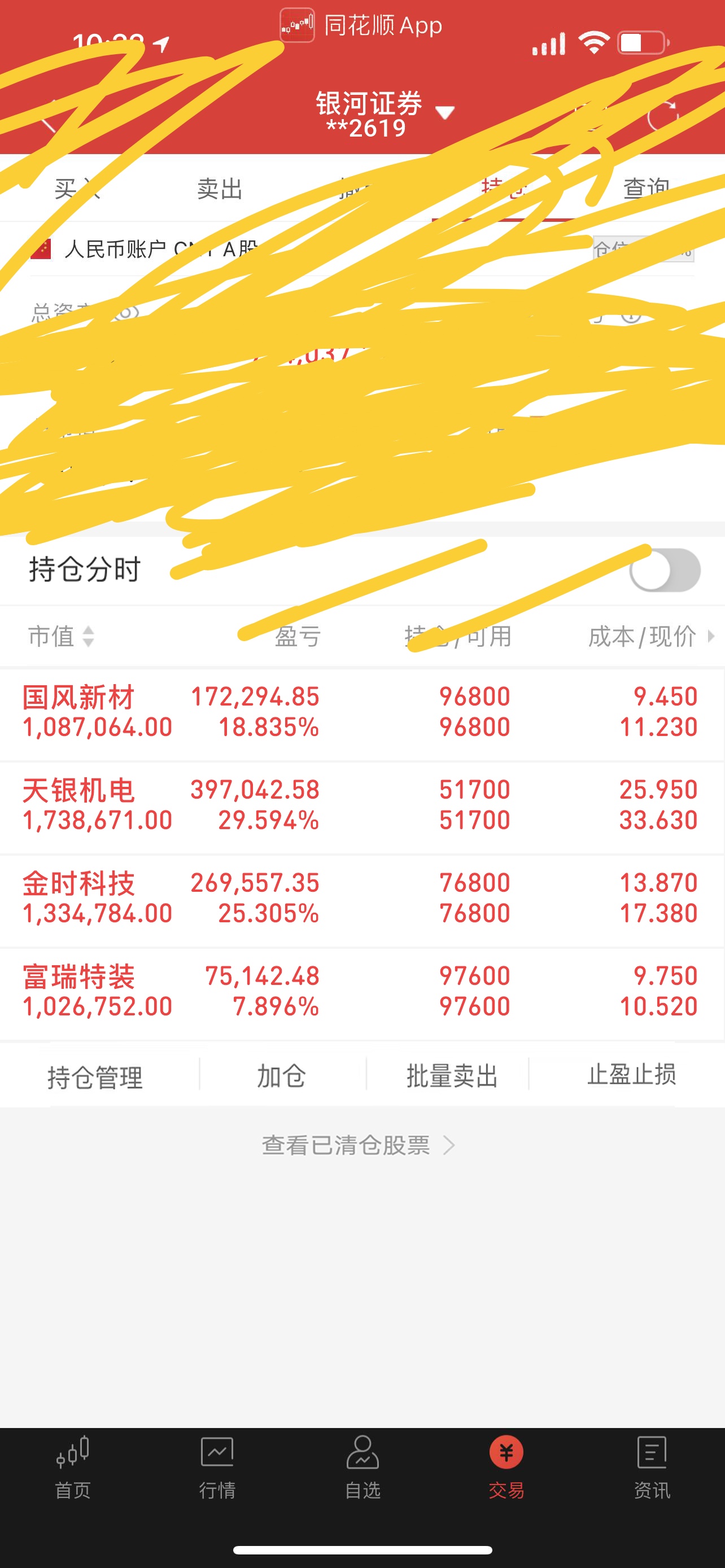 大家上午好,更新一下今日持仓布局国风新材早上低开没有走还在持有中天银机电和金时科