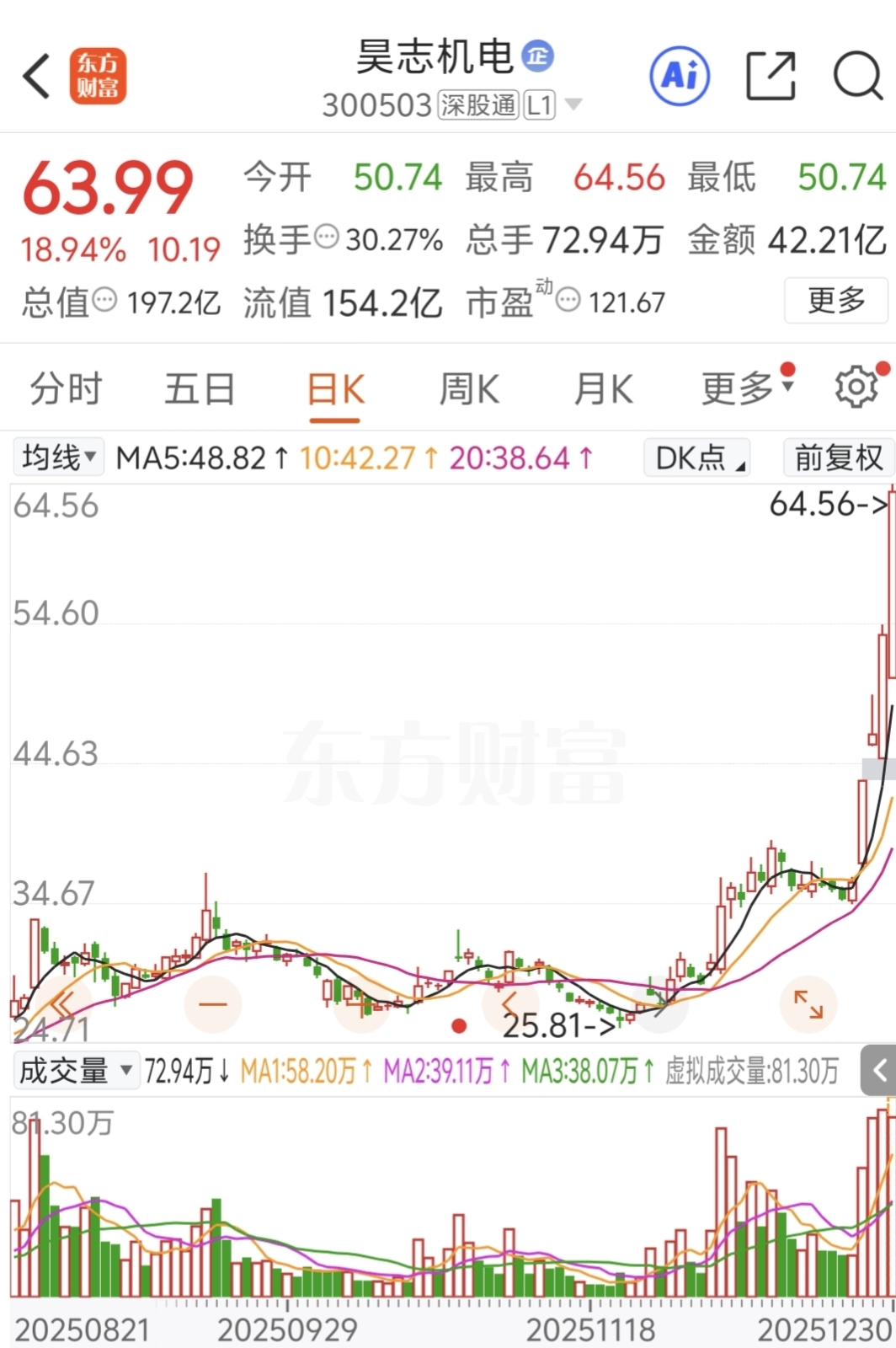 $昊志机电(SZ300503)$ 卖飞了。。