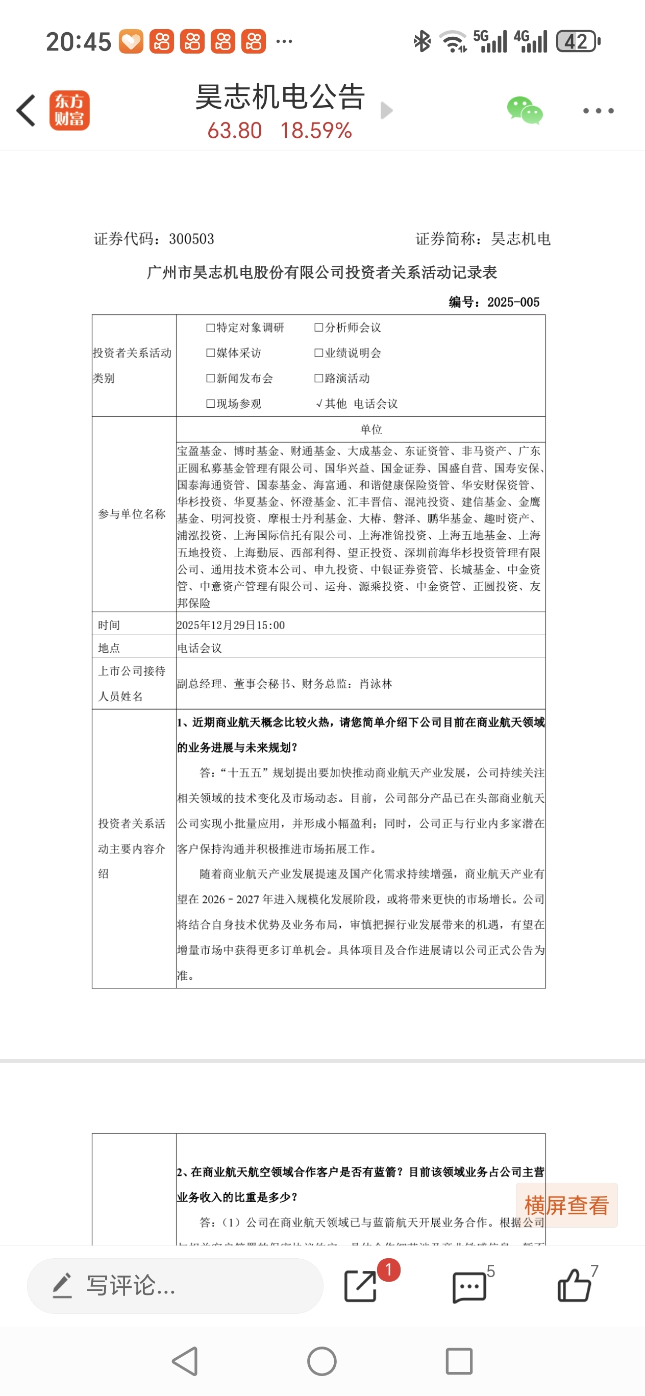 $昊志机电(SZ300503)$ 你们都没有看投资者关系活动记录表吗?公司在会上表达: