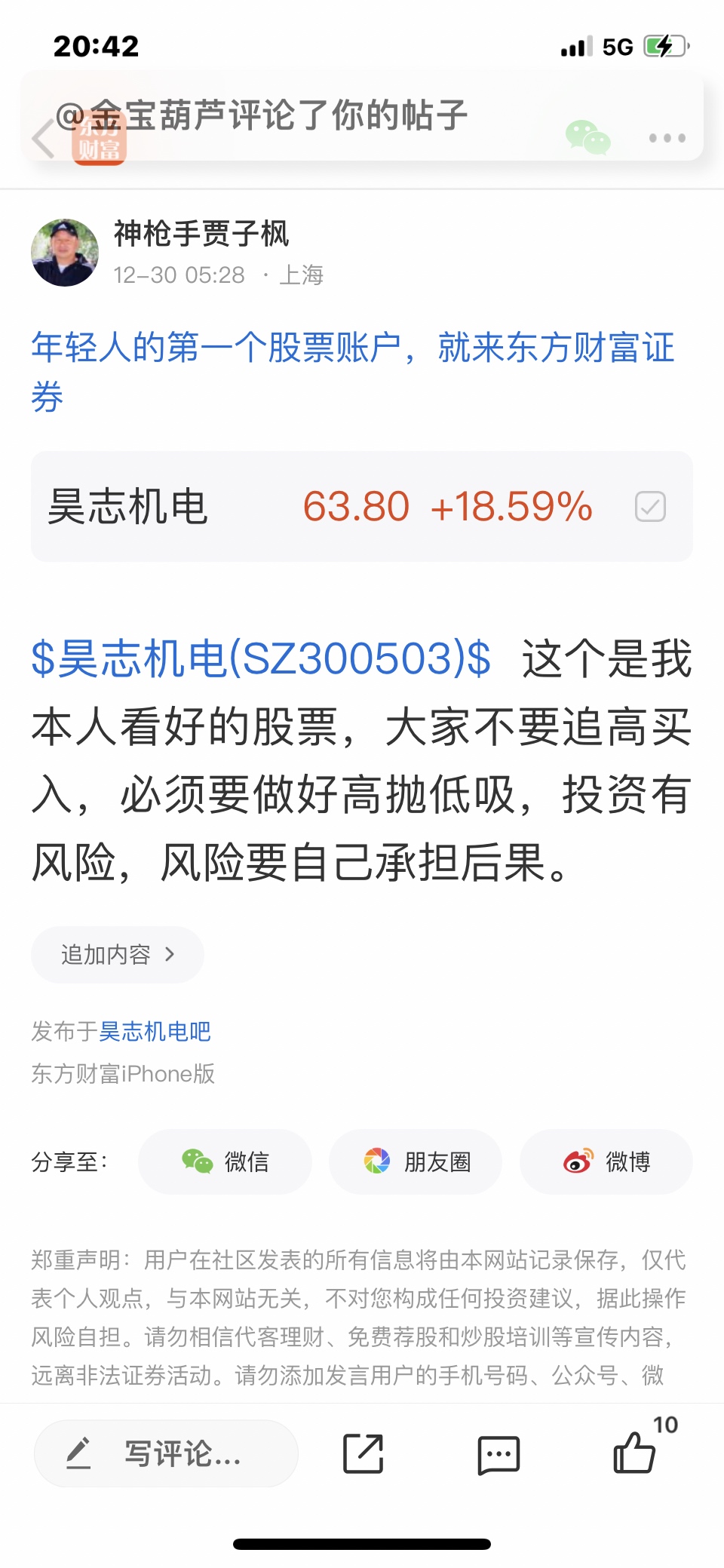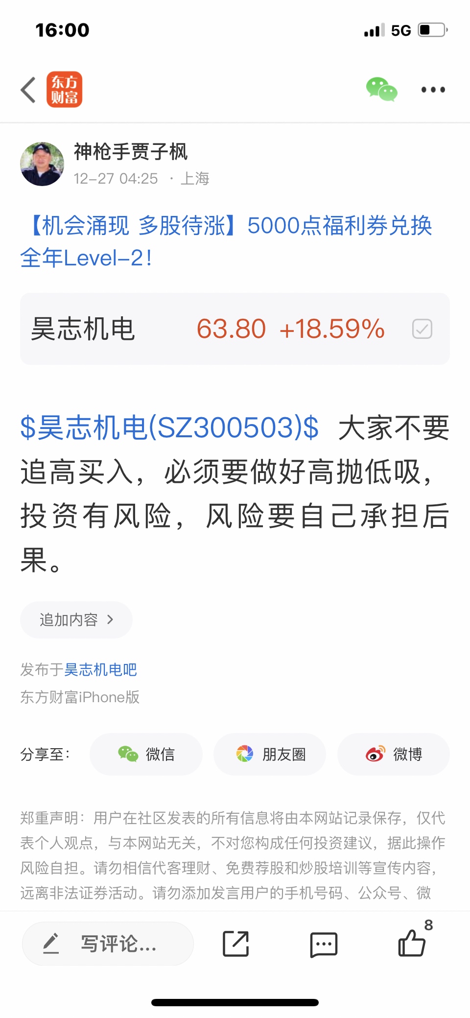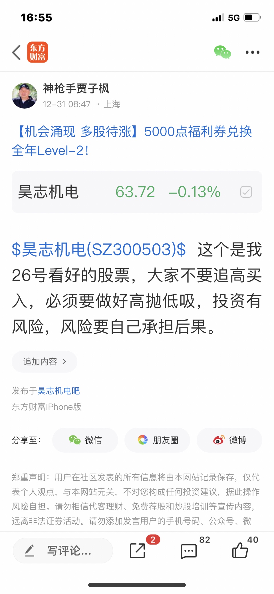 温馨提示: 1.根据《证券法》规定,禁止编造、传播虚假信息或者误导性信息,扰乱证券市场;2.用户在本社区发表的所有资料、言论等仅代表个人观点,与本网站立场无关,不对您构成任何投资建议。用户应基于自己的独立判断,自行决定证券投资并承担相应风险。《东方财富社区管理规定》