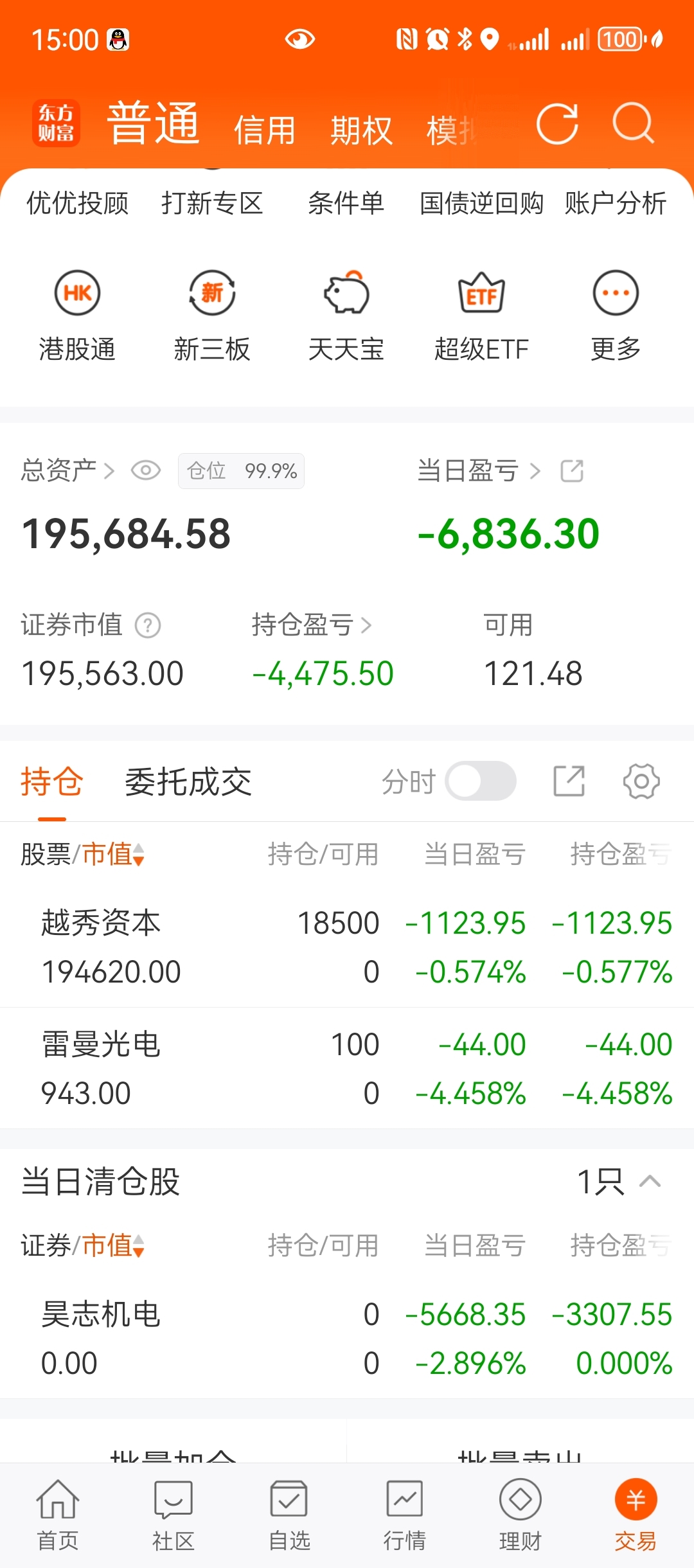 信维通信真的强者恒强。昊志机电没有冲高跑路,亏钱了。越秀下跌横盘就想去,去慢了。
