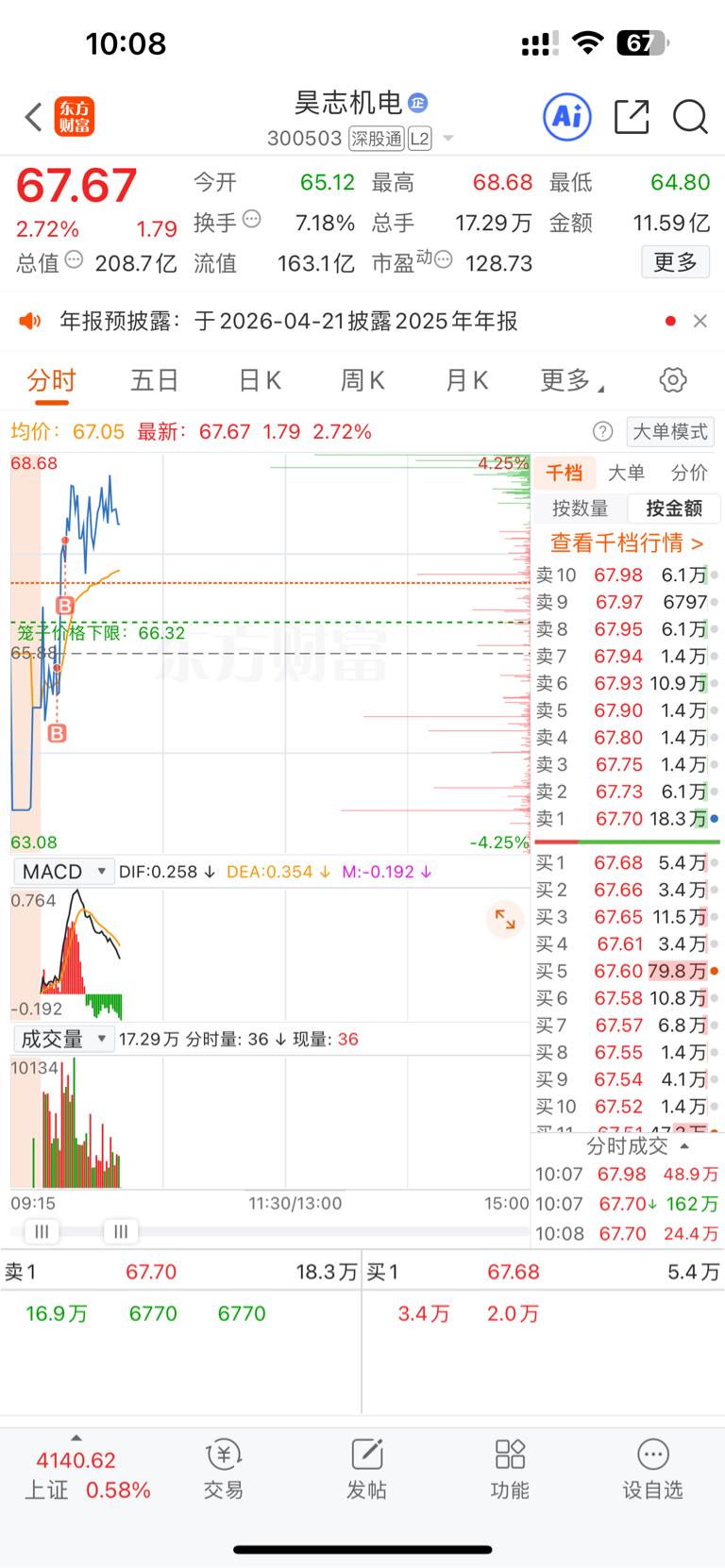 $昊志机电(SZ300503)$ $双杰电气(SZ300444)$ $江波龙(SZ301308)$ 买入昊志机电,止盈江波龙,止损双杰电气,调仓换股。