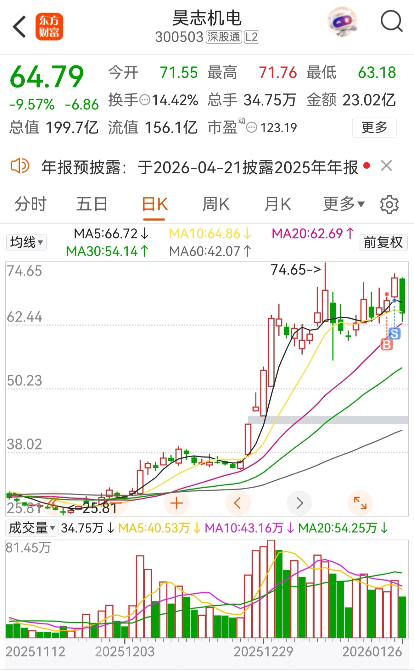 上周五还在悔恨一卖就飞,今天就一根大瀑布,也不知道是该高兴呢还是该悲伤。现在这个
