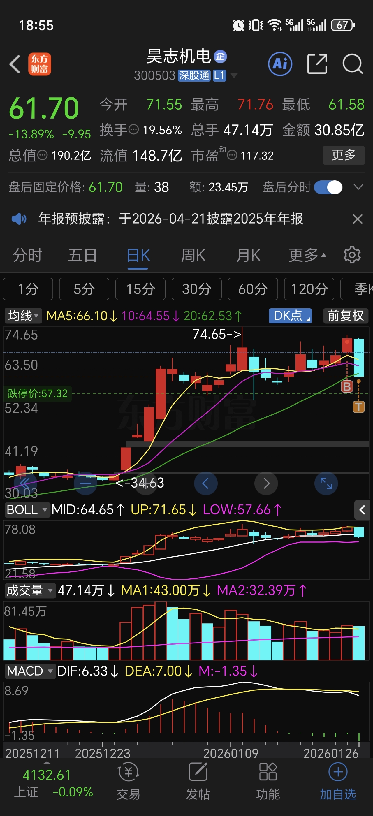 $昊志机电(SZ300503)$ 握草万万没想到,今天有点不对劲,还在平台,这波应该劝退不少,再看两天