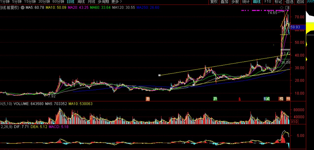 这股从12左右爬坡上来已经6倍多了!近期的放量大阳线就是大量出货阶段,从筹码峰看已经基本出完!不要再有任何幻想了!