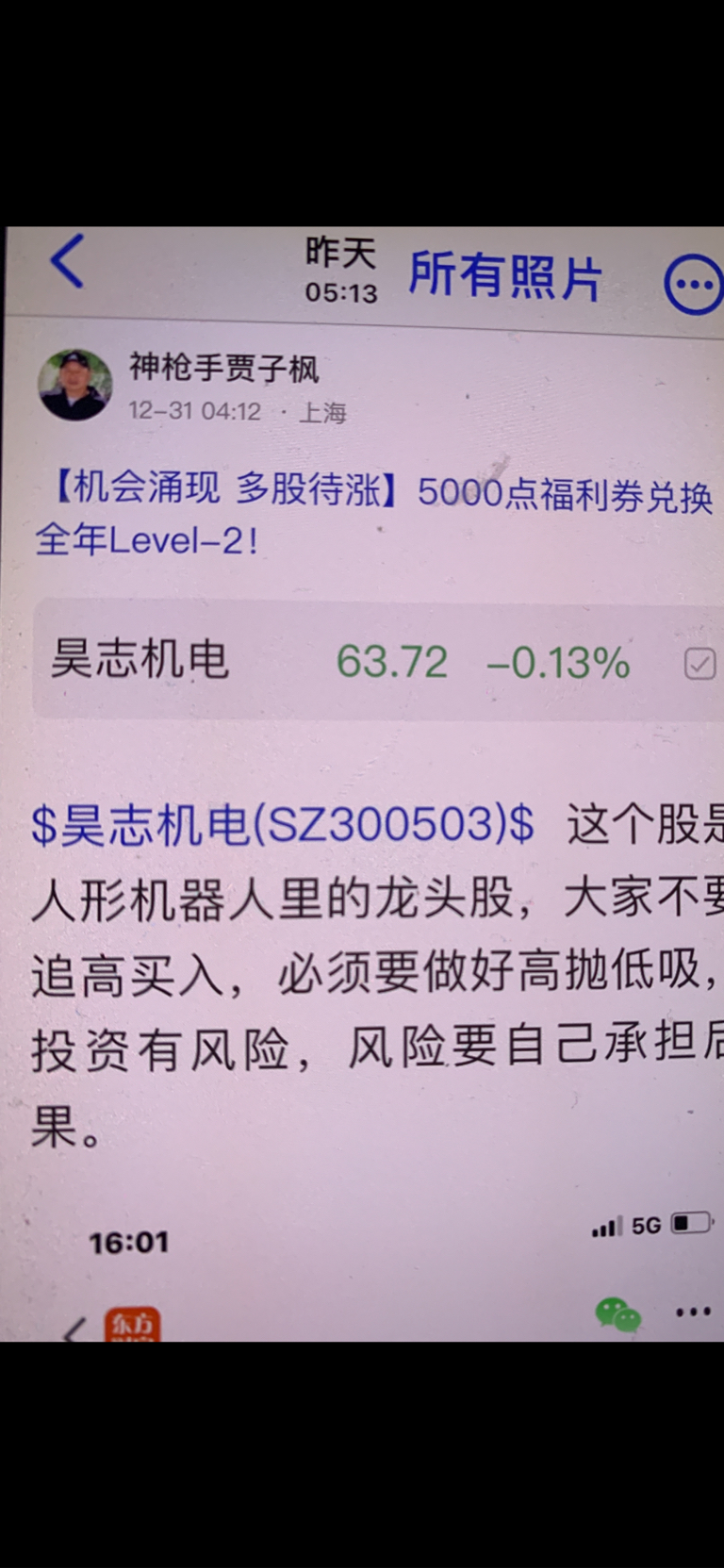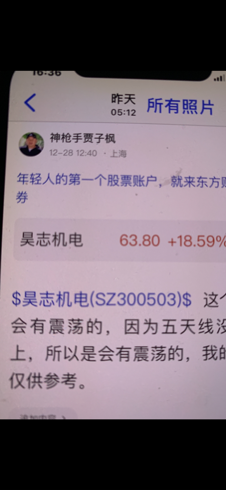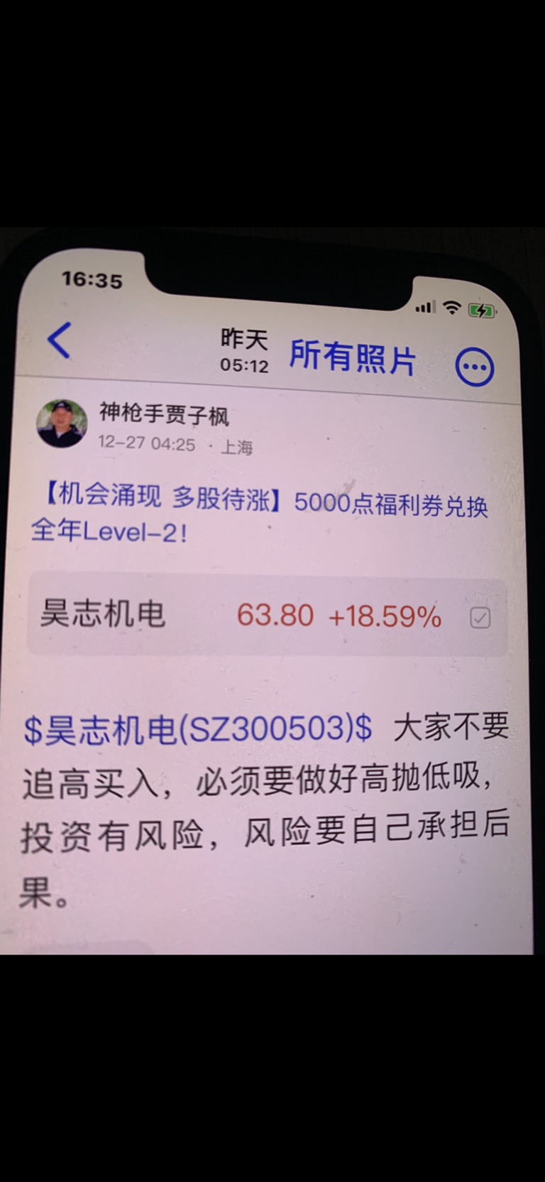 $昊志机电(SZ300503)$ 这个股是我十二月二十五号发表文章看涨的股票,大家不要追高买入,必须要做好高抛低吸,我是不推荐股票的,大家不要跟我买卖股票,大家自己买什么样的股票是和我无关的,因为我是免费和大家一起交流股票,我是和大家一起学习的,我的观点仅供参考,投资有风险,风险要自己承担后果,