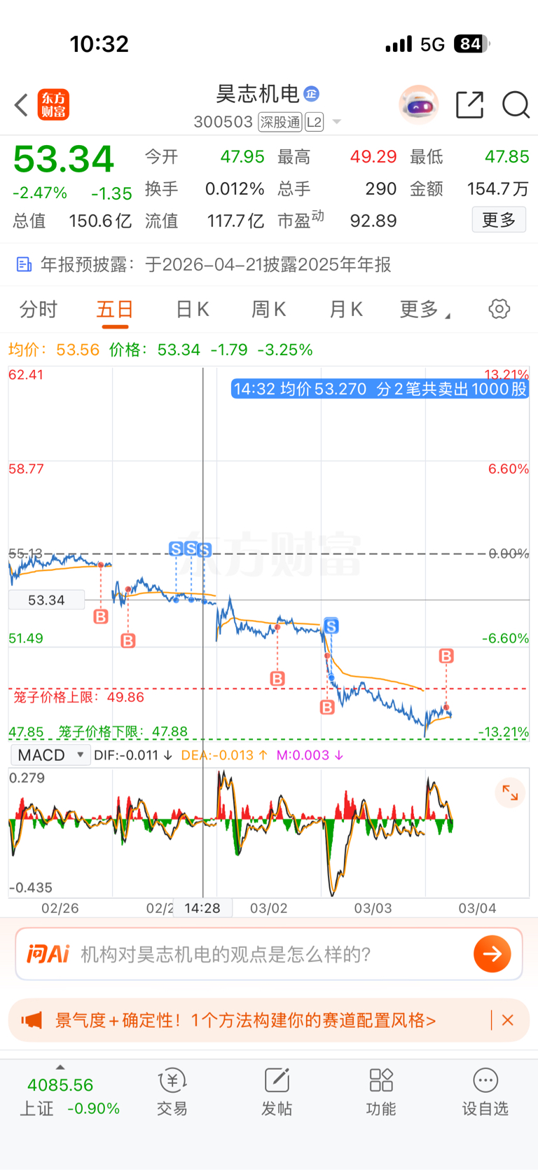 $昊志机电(SZ300503)$ 跌3天了。我接回来一点