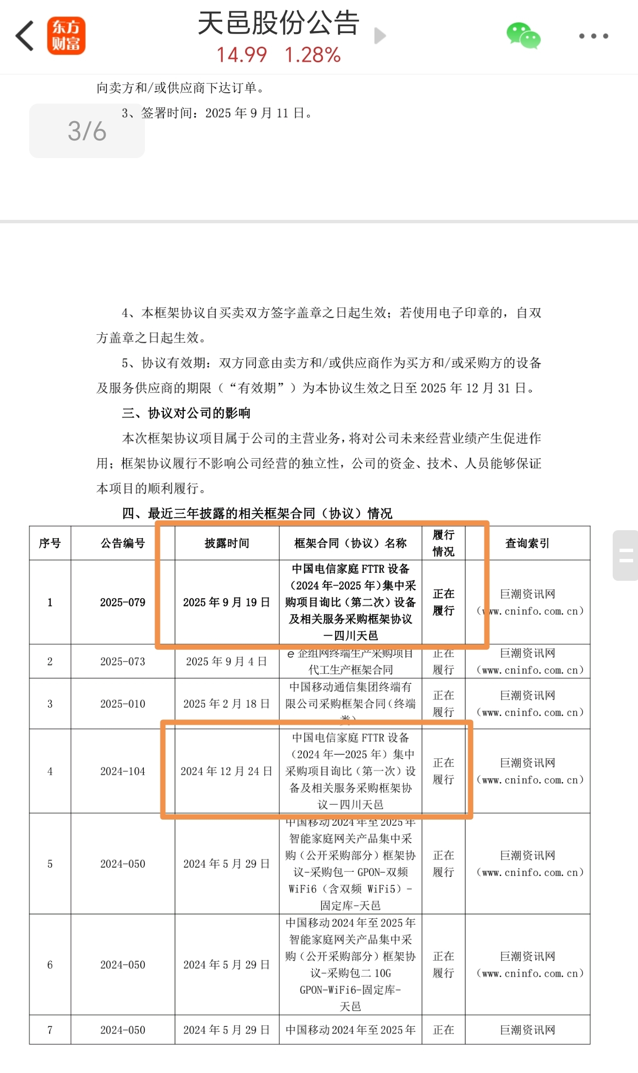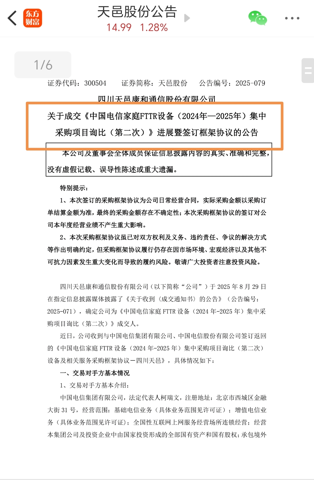 天邑股份300504:为官方供应商,批量提供中国电信家庭FTTR设备,已经与中国电信签订两次采购框架协议。