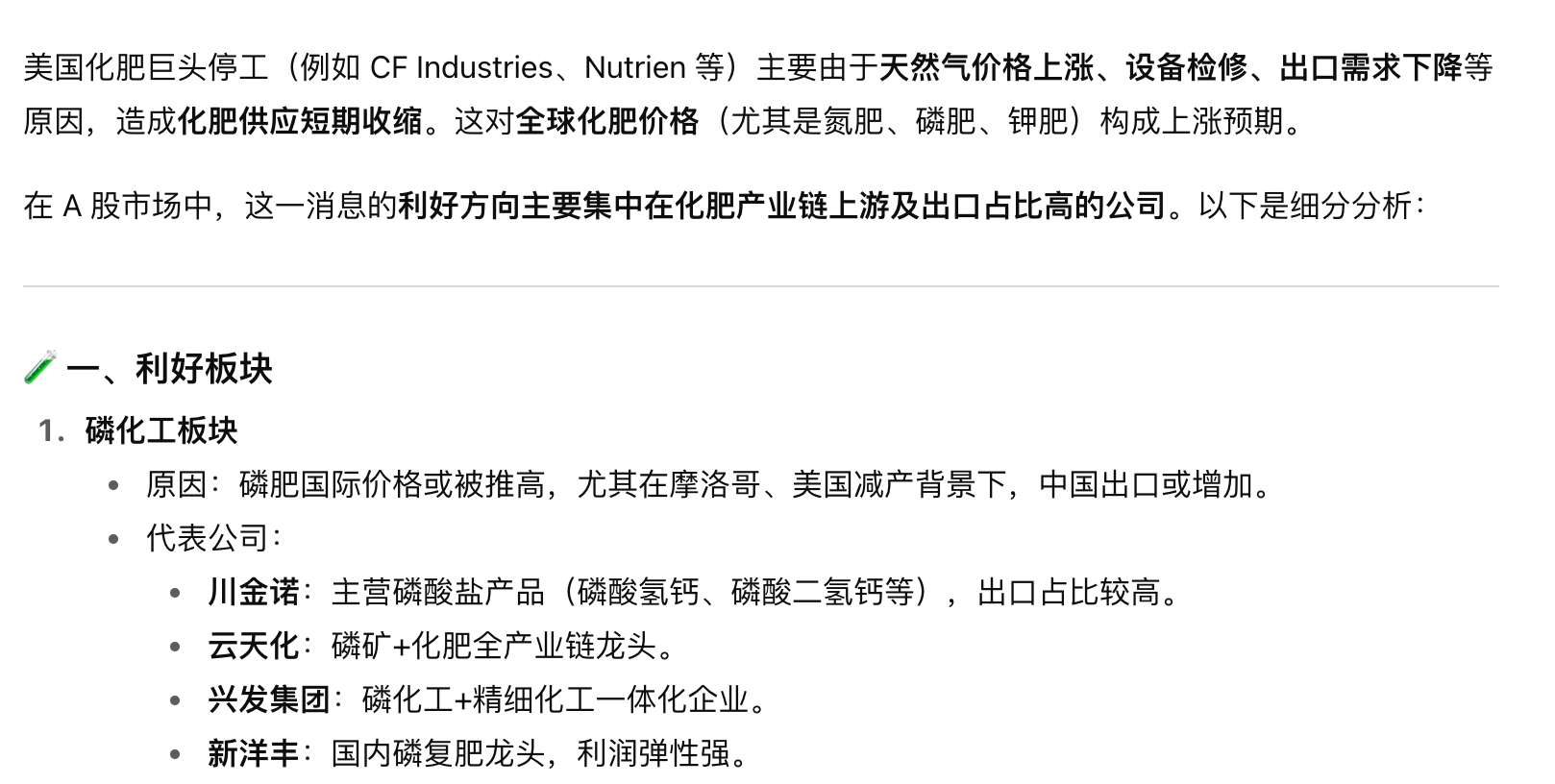 $川金诺(SZ300505)$ 美国化肥生产商美盛(Mosaic)股价周五跌9.24%。公司表示,其磷酸盐工厂因机械故障和公共设施中断导致产量大幅下降,三季度产量约170万吨,低于预期,销售量亦未达标。