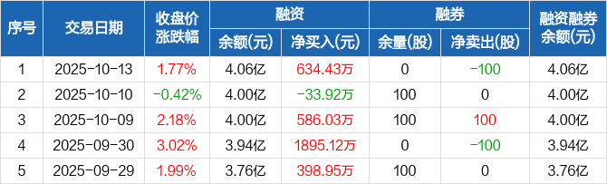 川金诺:融资净买入634.43万元,融资余额4.06亿元(10-13)