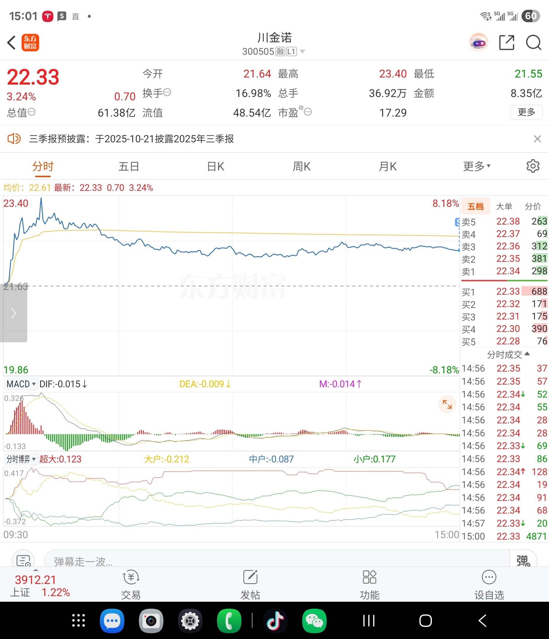 $川金诺(SZ300505)$ 对子,我先稳一手