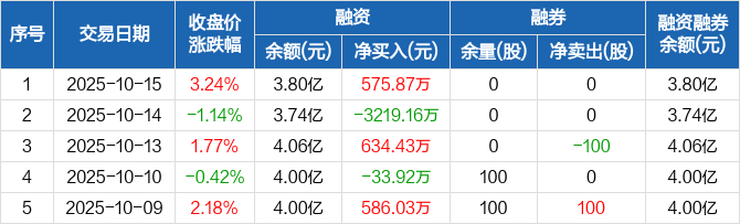 川金诺:融资净买入575.87万元,融资余额3.8亿元(10-15)