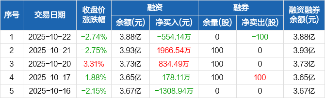 川金诺:融资净偿还554.14万元,融资余额3.88亿元(10-22)