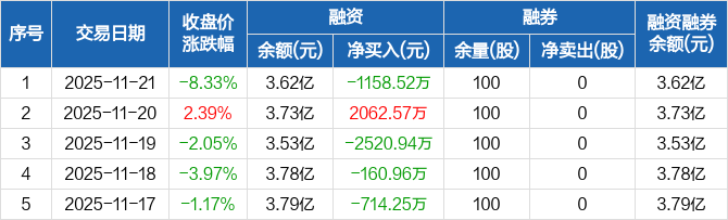 川金诺:融资净偿还1158.52万元,融资余额3.62亿元(11-21)